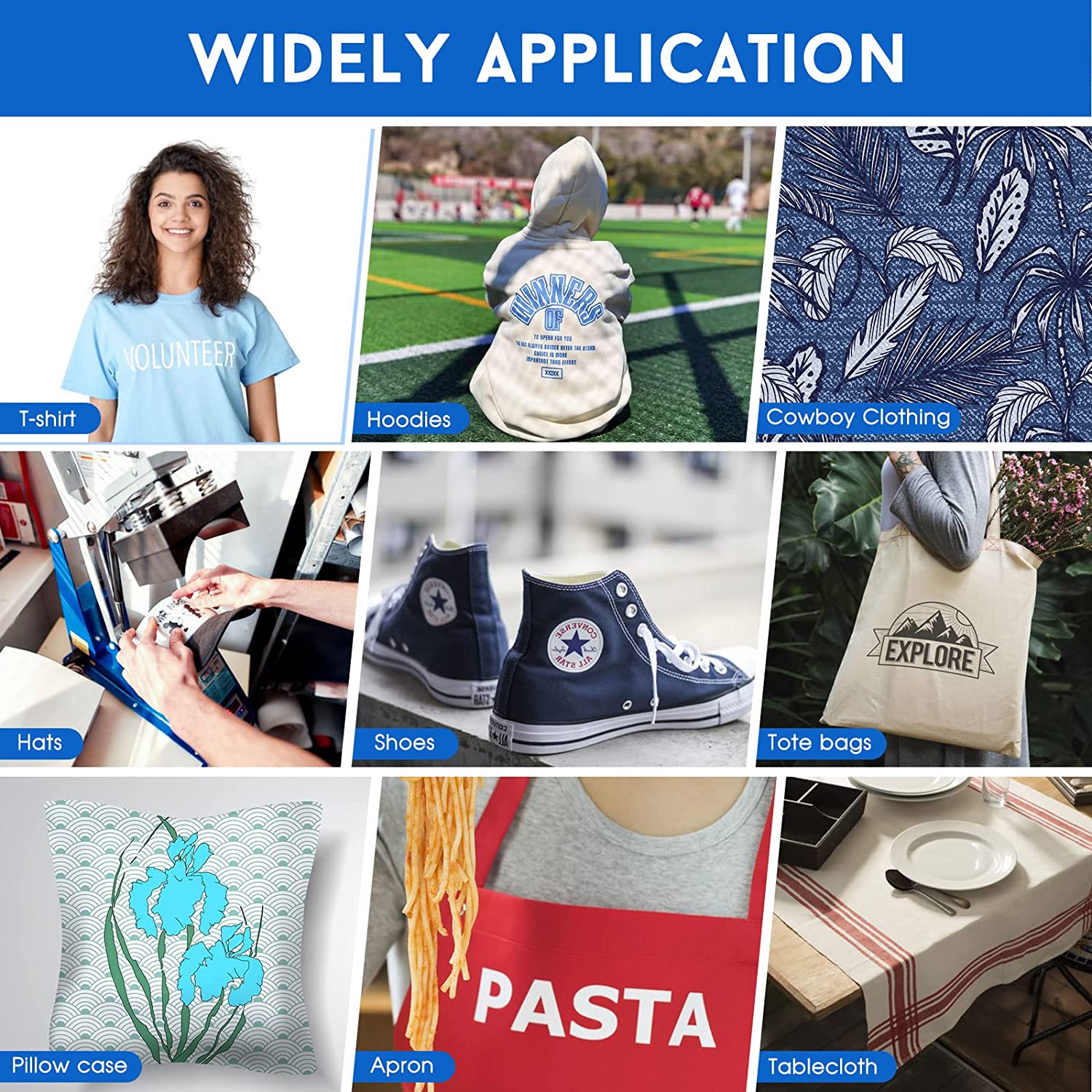 Great ApplicabilityOur dtf transfer sheets can be used on white fabric and dark fabric and light fabric,and applicable to almost all garment materials(Cotton, Polyester, leather, Canvas, T-shirts, pillows, caps , gloves, sneakers etc). |